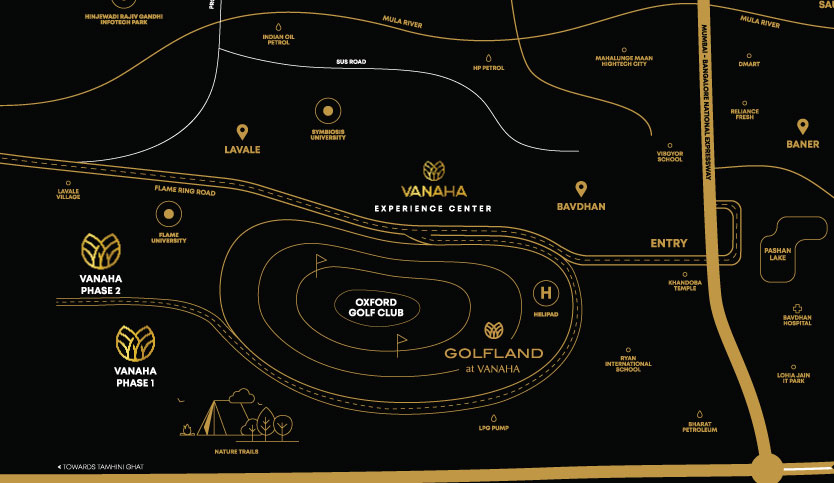 Nestled in the prime location of Bavdhan, Shapoorji Pallonji Golfland at Vanaha offers excellent connectivity across Pune. With easy access to Chandni Chowk, Paud Road, and NDA Road, this well-planned community ensures swift travel to major IT hubs, business centers, renowned educational institutes, healthcare facilities, and entertainment destinations. Its close proximity to the Pune-Mumbai Highway further enhances convenience, making everyday commutes smooth and keeping you well-connected to everything that matters.